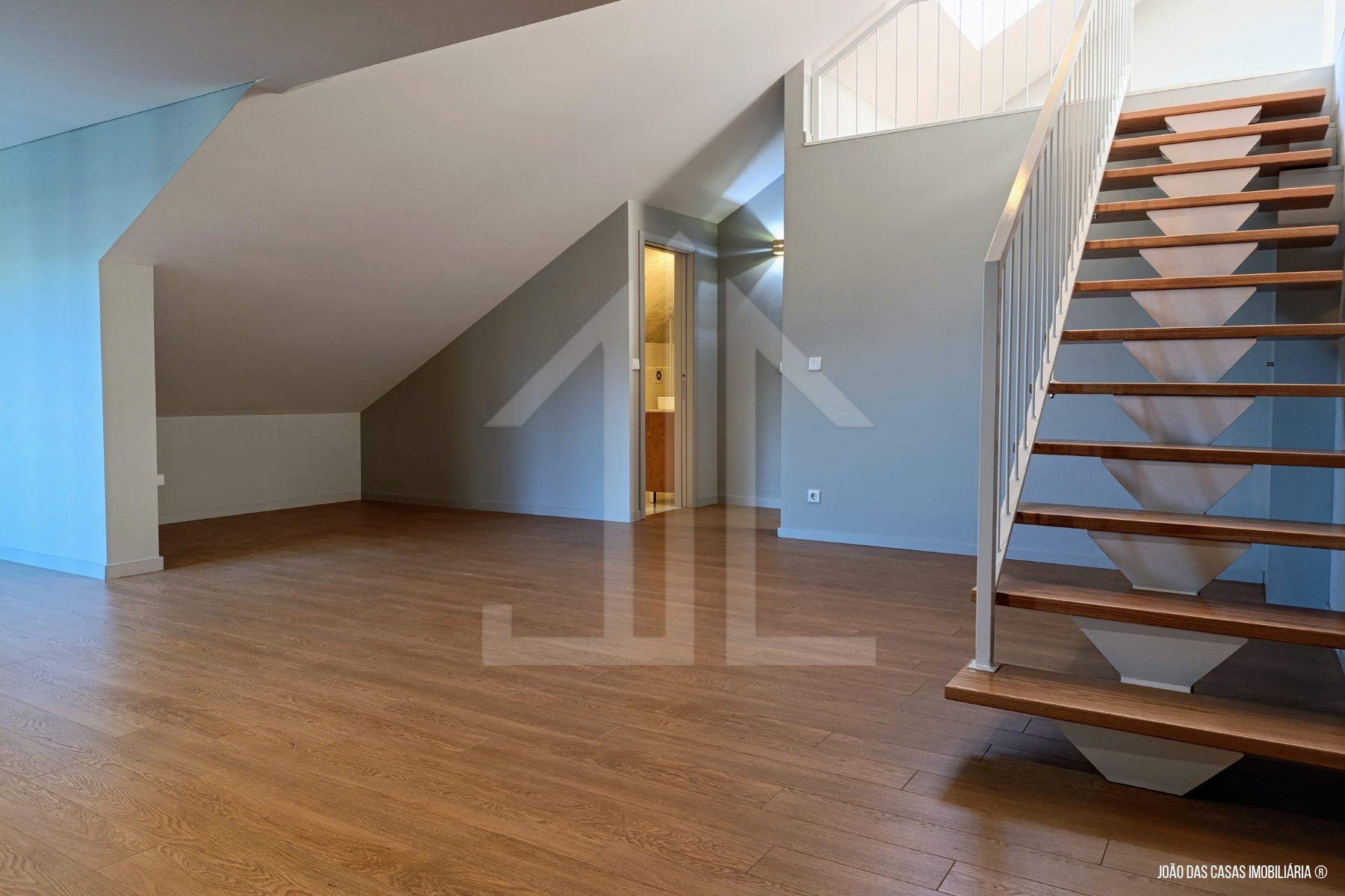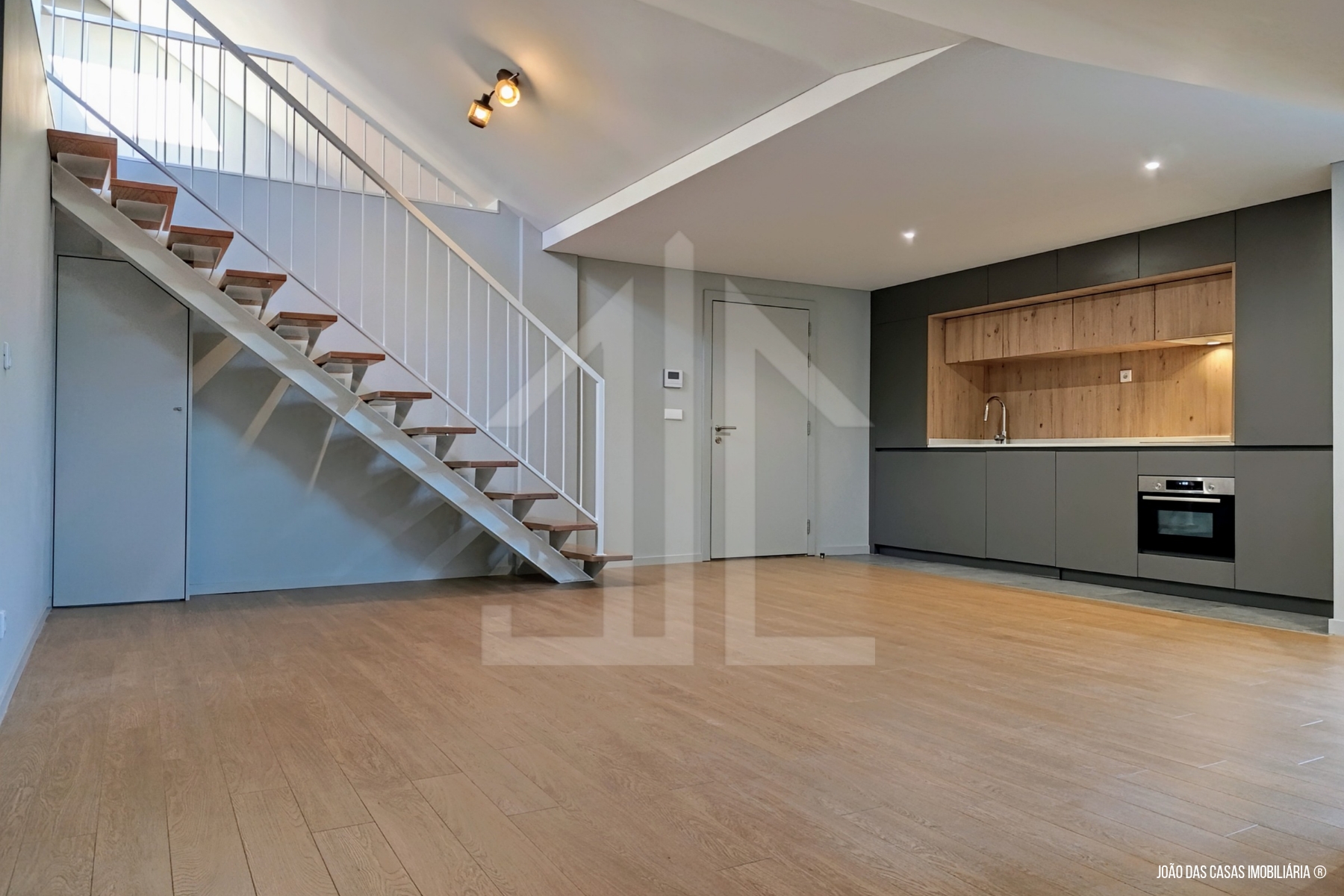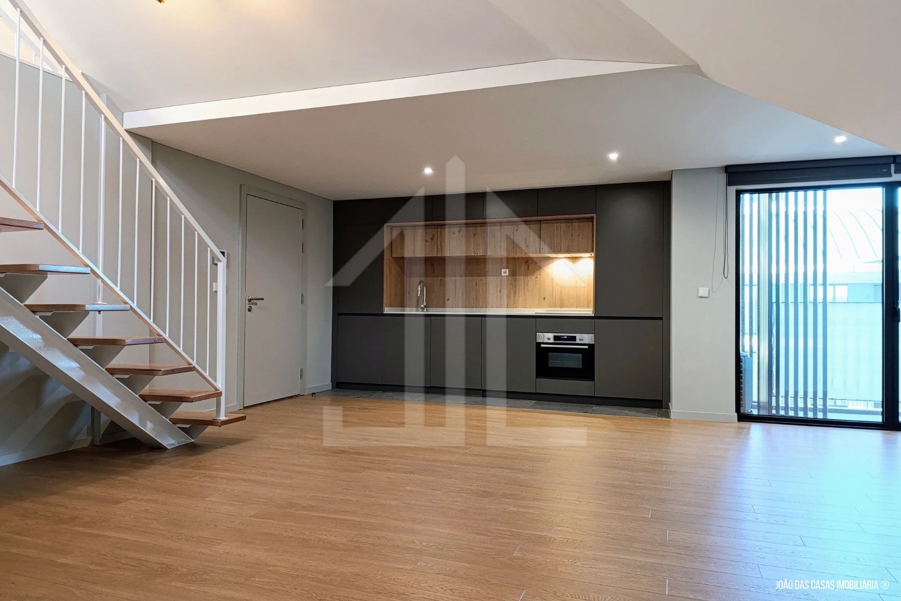 Conceito Open Space de sala cozinha no piso de entrada, assim como a área de dormir, no piso superior uma área extra, ainda por explorar com muita luz e bom potencial.